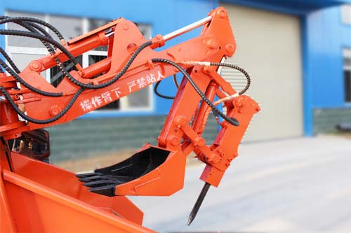 120型破碎錘扒渣機主要是為大型巷道而設(shè)計,整機主要優(yōu)勢為:挖掘系統(tǒng)大小臂配有標(biāo)準(zhǔn)型和加長型,標(biāo)準(zhǔn)型大小臂長度為1.05m和1.0m,加長型大小臂長度為1.2m和1.25m,供用戶根據(jù)巷道截面大小定制選裝。建議2.6×2.6㎡截面巷道選用標(biāo)準(zhǔn)型大小臂,3.0×3.0㎡及以上截面巷道選用加長型大小臂,以提高工作效率。