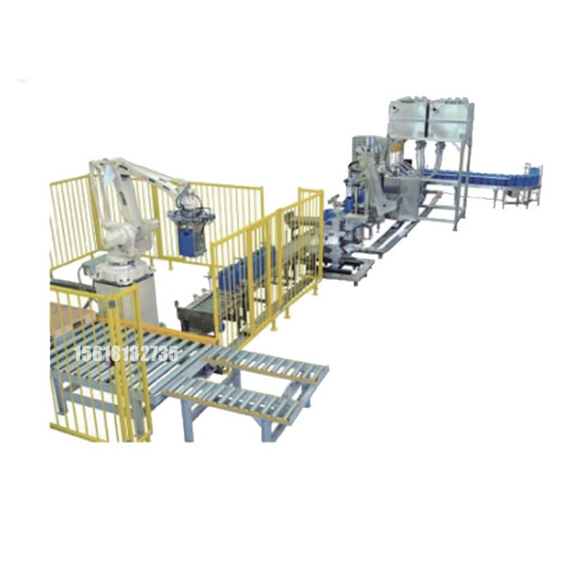 ?流程:自動提桶分桶-自動灌裝一自動提蓋鎖蓋 一自動貼標一自動碼垛-自動纏繞膜包裝 一自動木托分離輸送;